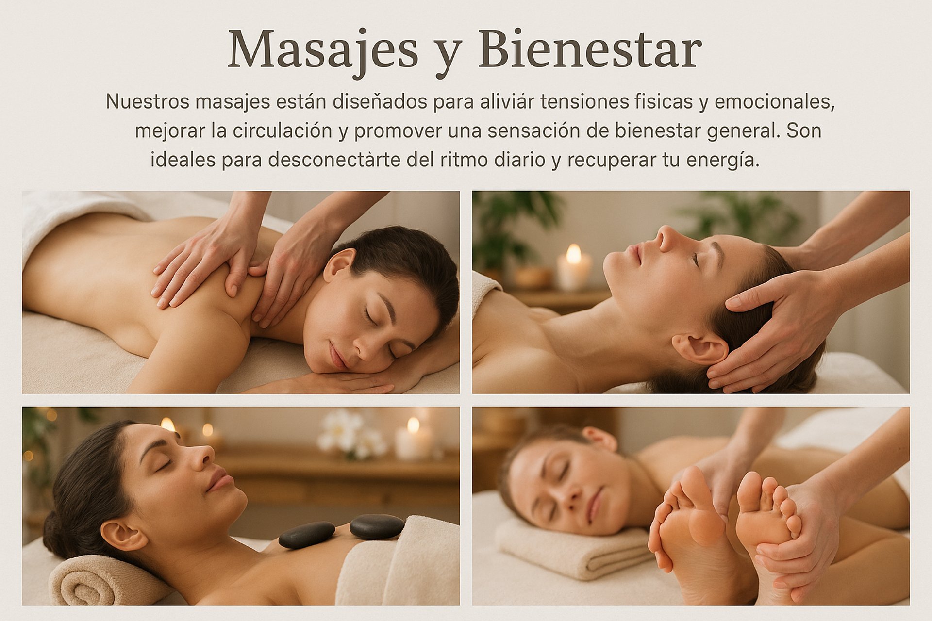 Nuestros masajes están diseñados para aliviar tensiones físicas y emocionales, mejorar la circulación y promover una sensación de bienestar general. Son ideales para desconectarte del ritmo diario y recuperar tu energía.