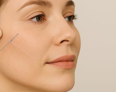 Consiste en la inserción de hilos reabsorbibles bajo la piel que estimulan colágeno y tensan la zona tratada. Proporcionan un efecto lifting inmediato y una mejora progresiva de la firmeza cutánea.