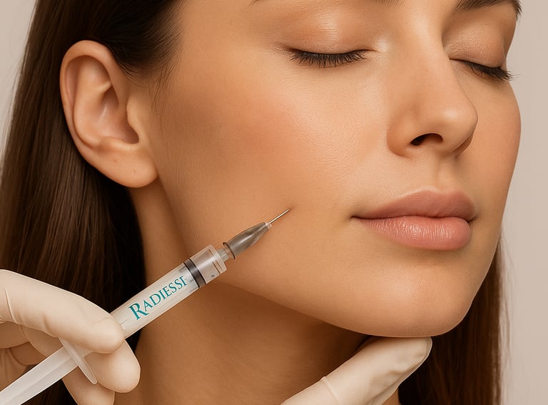 Radiesse está compuesto por micropartículas de hidroxiapatita cálcica, un material biocompatible que mejora la firmeza y densidad de la piel con un efecto lifting progresivo y duradero.
